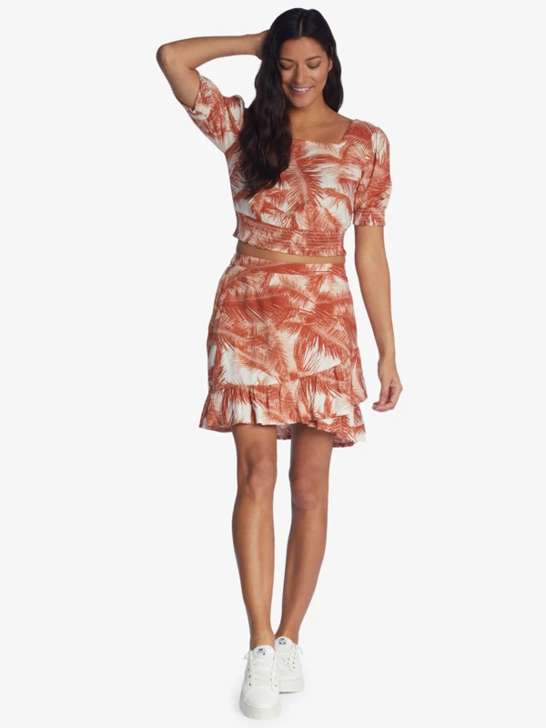 Made of airy viscose fabric, this printed crop top has a square neckline, short puff sleeves with smocked cuffs, and a smocked waistband. For the perfect beach set, check the matching skirt.