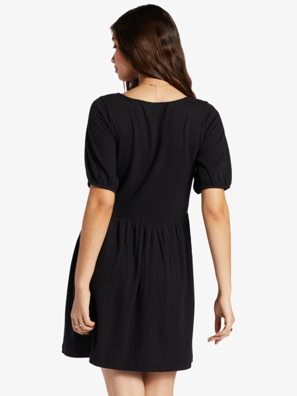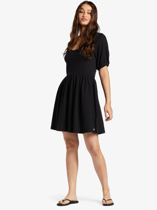 The All My Dreams mini dress combines a cute puff sleeve with a scoop neck, and a fun, flowy skirt. Made of crinkle jersey, this lightweight women’s sundress is a casual staple for everything from coastal days to nights out in the city.