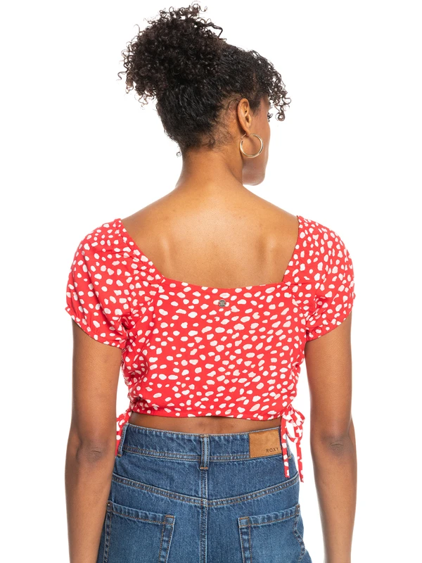 Our Dear Amor crop top is a must for warm weather with its lightweight feel featuring a square neckline, short sleeves, and shirred side ties. An elasticized hem ensures a comfortable, flattering fit for summer fun.