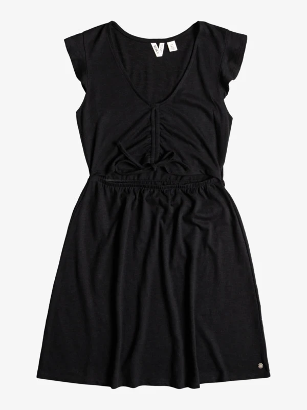 Summer nights just got hotter with the Flirty Vibes Knit Dress for women. Crafted from soft slub jersey fabric, the flowy dress features super short ruffled sleeves, a ruched front, and a cut-out detail at the waist.