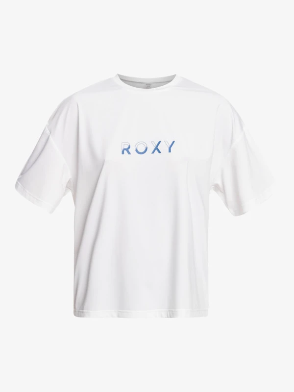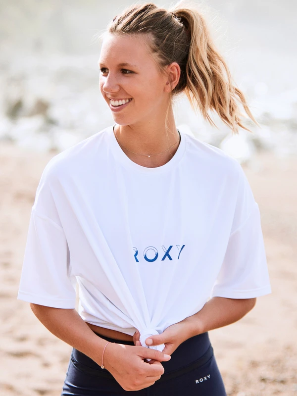 Designed to fit loose and long, this oversized sport tee is made of an anti-microbial blend of recycled poly fabric with DryFlight™ tech for quick-drying comfort. Styled with a ROXY graphic hit at the chest.