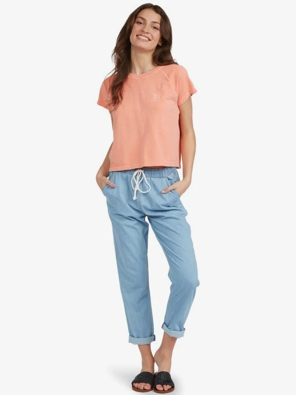 Surf’s up! For authentic surf style and post-sesh comfort, this oversized tee for women is all you need. Crafted from pure soft knit cotton fabric, the short raglan sleeve design features a rib knit collar and original ROXY artwork on the wearer’s left chest.