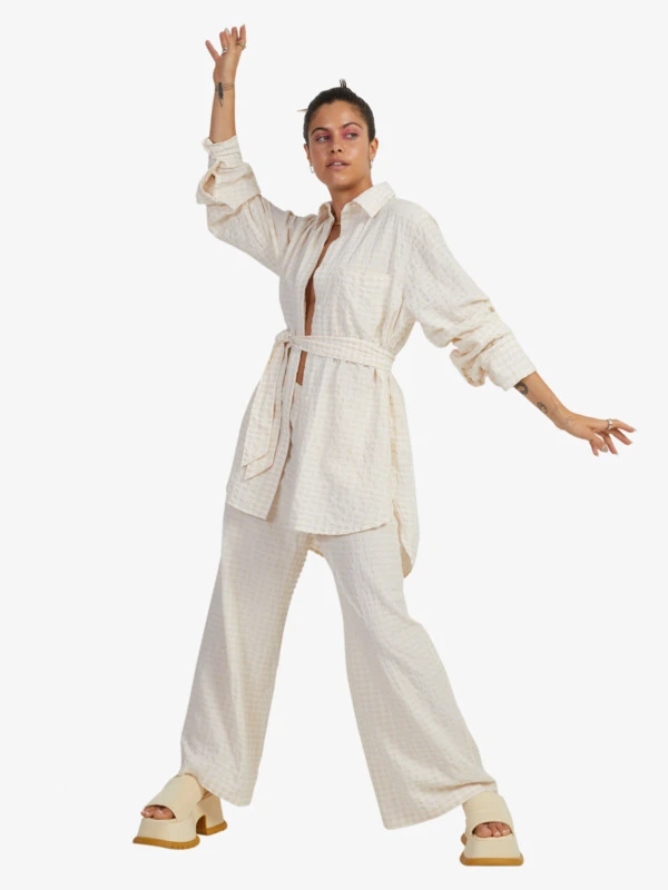 These statement-making trouser pants deliver effortless style and breathable comfort in a blend of organic cotton with a cool checker print. Dress them up with a blazer or down with your favorite cropped tee.