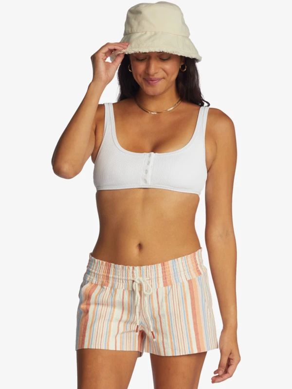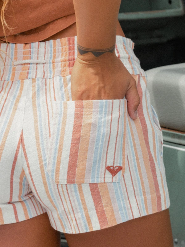 Textured stripes make it easy to mix and match your favorite Roxy bikinis with these women’s beach shorts. The lightweight yarn-dyed cotton fabric is breathable and soft on the skin to double up on comfort with the smocked waist.