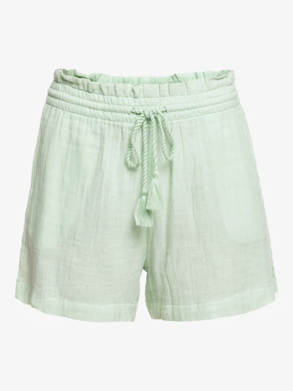We’re taking beach casual to the next level with our Pop Sun shorts for women featuring an elasticized waistband with a drawcord tassel tie. The flattering high-rise bottoms are crafted from lightweight double-layered cotton for all-day comfort.