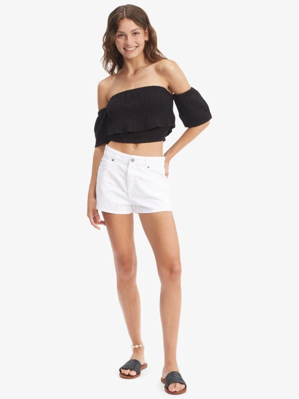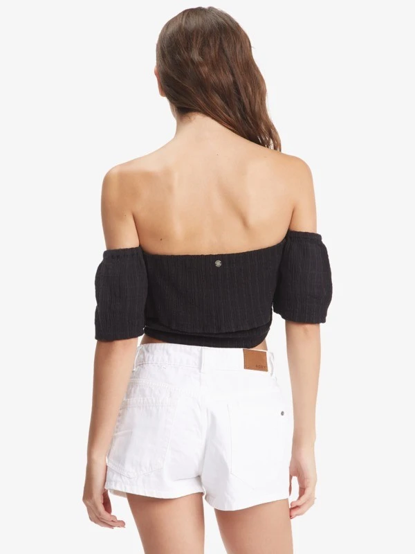 Soak up the sun in this off-the-shoulder crop top for women. The lightweight tri-blend fabric is soft and airy, while the layered front, short sleeves, and elasticized hem add a feminine finish to this Roxy original.