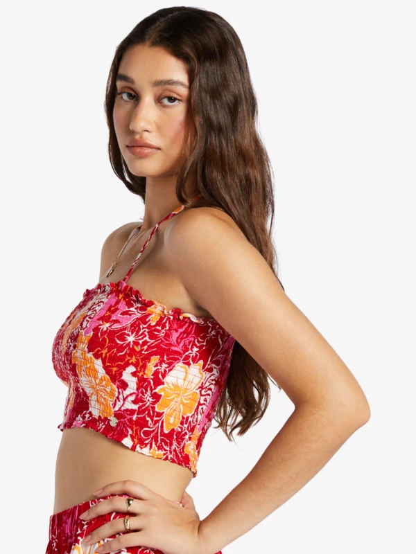 An essential piece in any warm-weather wardrobe, the Warm Waters bandeau top is made of eco-conscious smocked fabric with removable halter ties. Coming in a range of prints and colorways, it’s a timeless piece that’s never going out of trend.